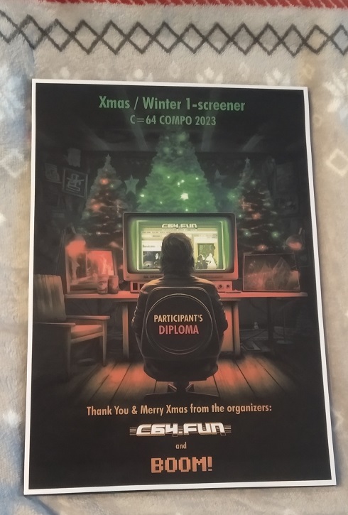 Poniżej zamieszamy poglądowe zdjęcie dyplomu uczestnictwa, który otrzyma każda grupa uczestnicząca w konkursie, by rozdać ludziom zaangażowanym w stworzenie zgłoszonej pracy. Będzie więc dyplom i dla muzyka, i dla kodera, i dla grafika! Dyplomy w formacie A4, zalaminowane - roześlemy pocztą.